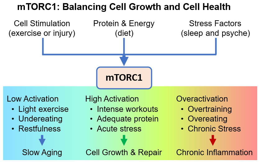 One of the key pathways linking metabolism, nutrition, and immune regulation is a cellular system known as mTOR, which stands for mechanistic Target of Rapamycin. mTOR functions in two major complexes: mTORC1 and mTORC2. These complexes help determine whether your body prioritizes cell growth or cellular maintenance. Chronic activation of mTORC1 contributes to widespread low-grade inflammation, impaired tissue regeneration, and reduced immune efficiency. It responds to nutrient signals such as amino acids, insulin, and glucose, and when overactivated, it promotes continuous growth signals while suppressing important repair mechanisms.